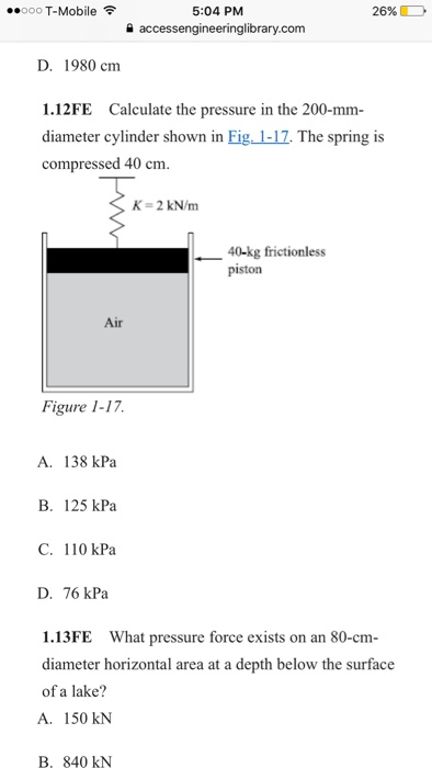 Solved Calculate The Pressure In The 200 Mm Diameter Cyli Chegg Com