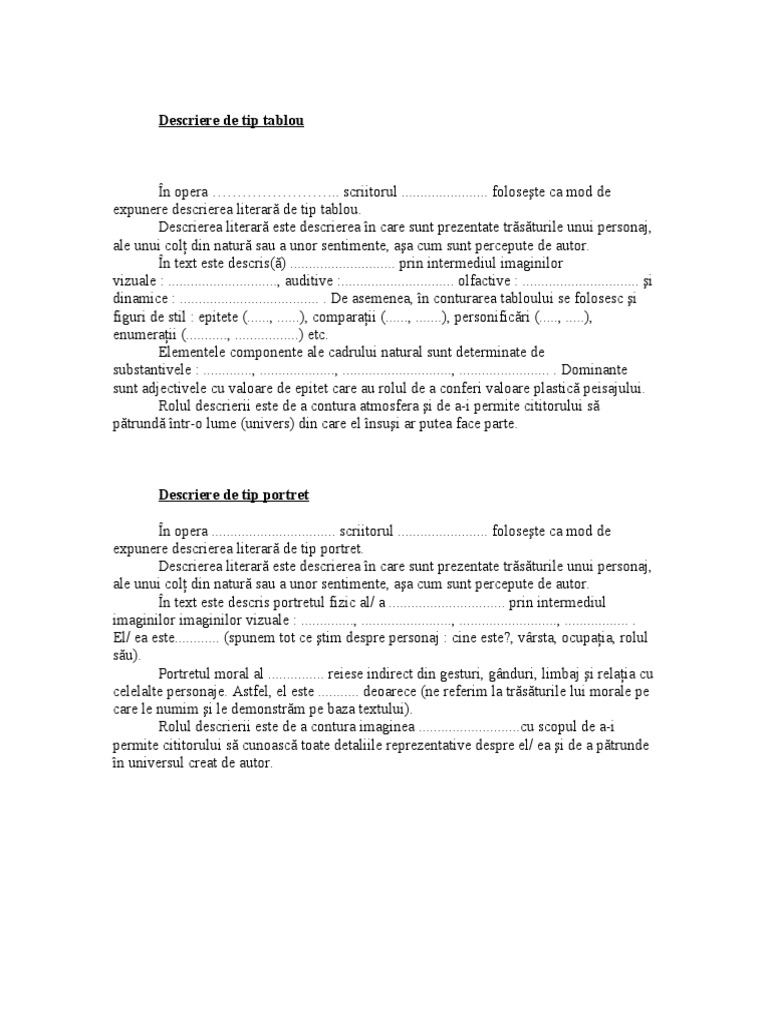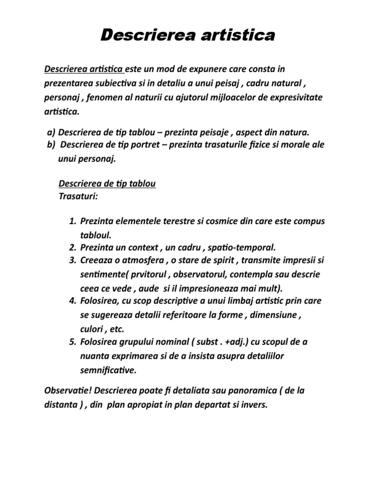 Descrierea Este De Tip Tablou Sau Tip Portret Brainly Ro