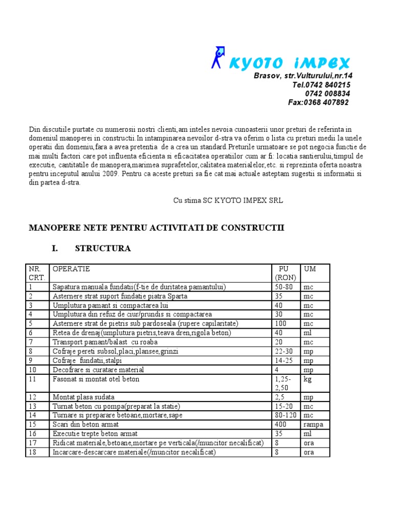 Tarif Manopera Lucrari De Constructii Gen5jrozjx4o