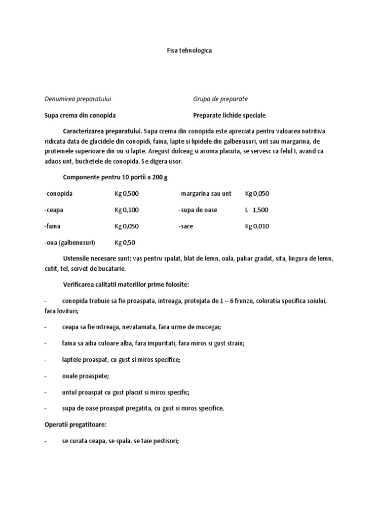 Fisa Tehnologica Supa Crema De Conopida