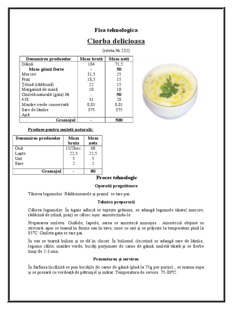 Proiect Gastrotehnie Fise Tehnologice Meniu Industria Alimentara 286954