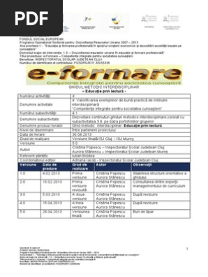 Fișe De Lectură șase Modele Pentru Prezentarea Unui Text