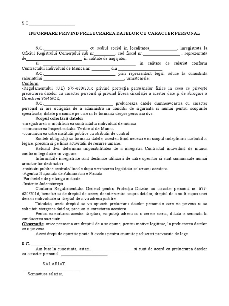 Doc Gdpr Modele De Informare Oana Rus Academia Edu