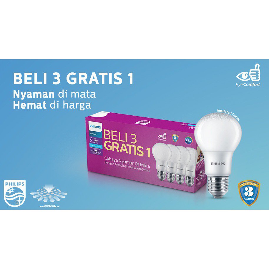 Lampu Led Bulb Philips 8w Paket 3 Free 1 8 W Watt 8watt Shopee Indonesia