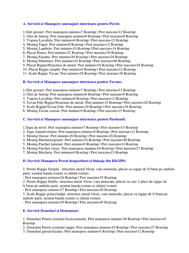 Preturi Manopera Amenajari Interioare Deviz Instalatii Electrice Sanitare Termice Conform Normativului In Vigoare 2020 Profesionalconstruct Ro
